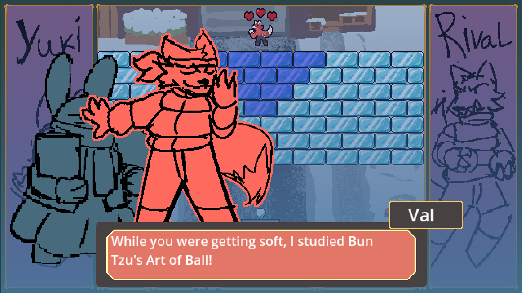 Controls: A and D or Left and Right to control Yuki. Space to launch the snowball or advance dialogue.